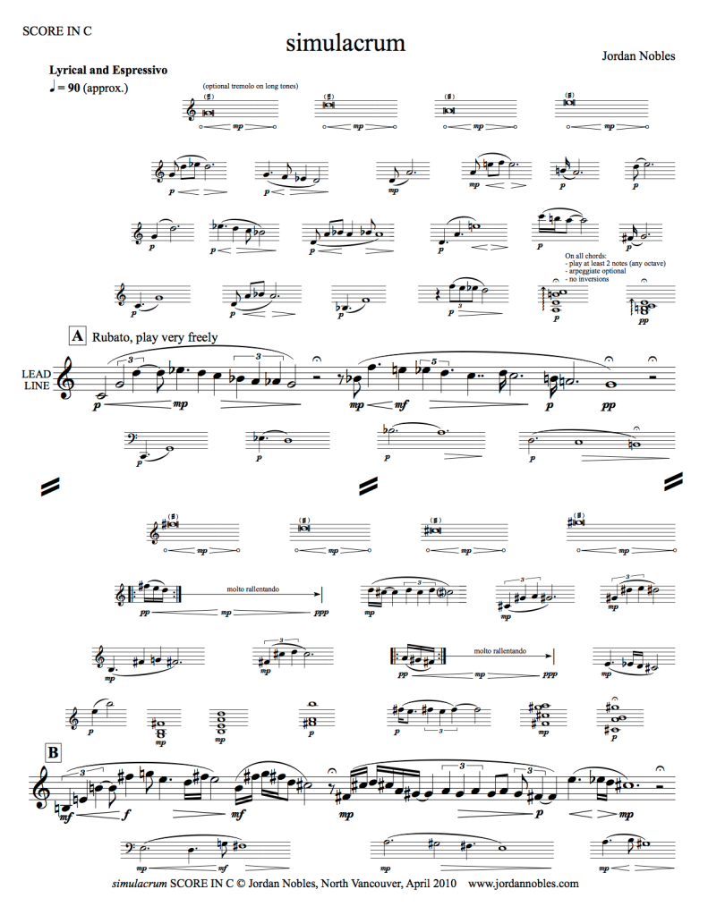 These works are available for free download and printing. However, if you intend to perform them publicly, please submit a $25 performance licensing fee. (If you don’t have a Paypal account you can e-transfer direct to jordannobles@gmail.com )