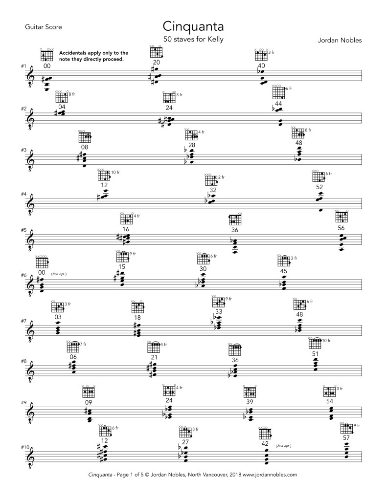 Cinquanta (2018) – for guitars, percussion, pianos, harps, etc.