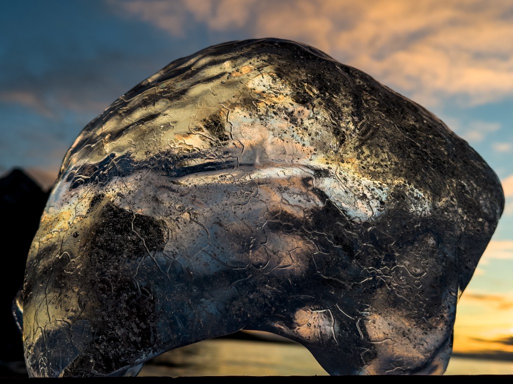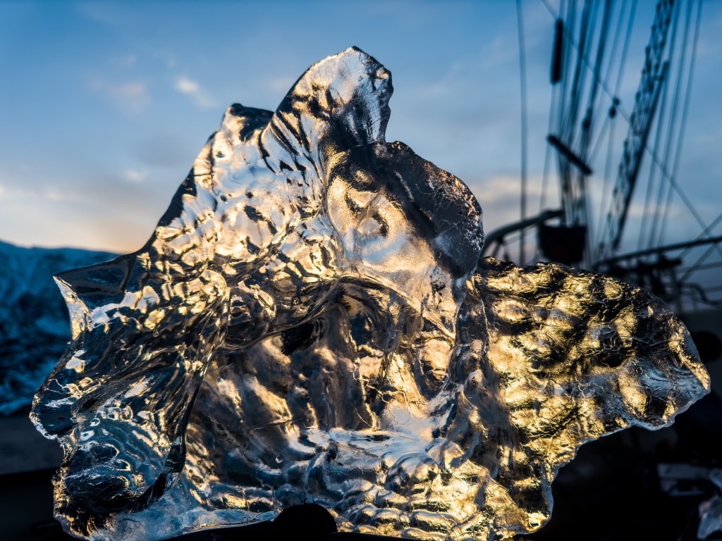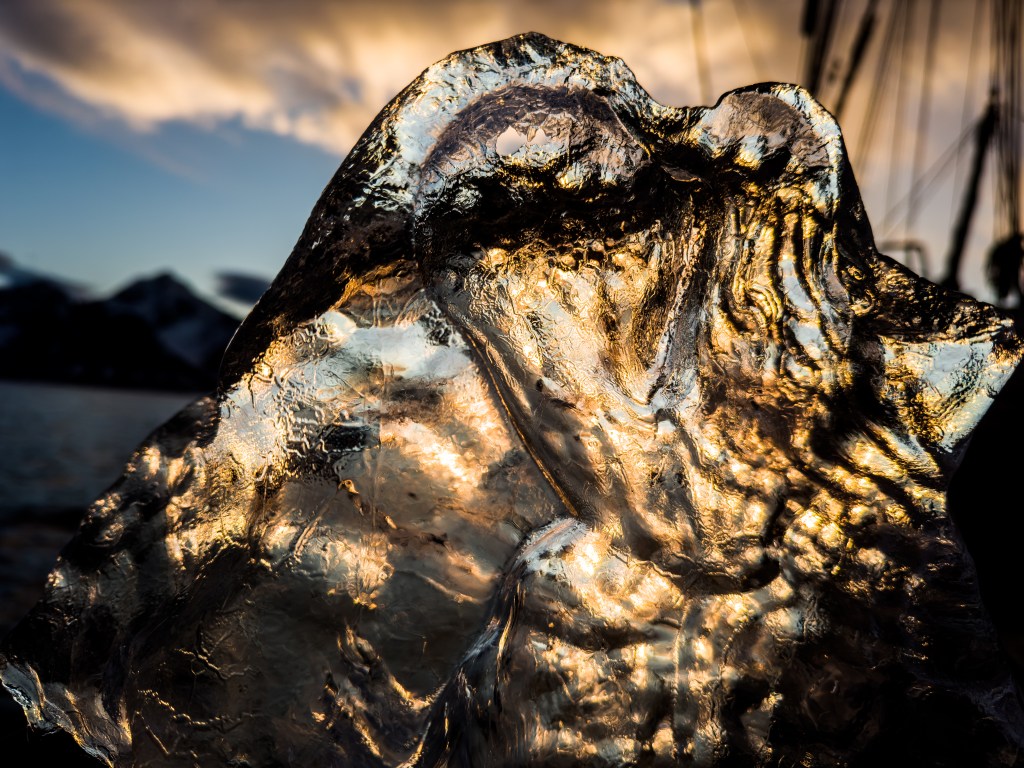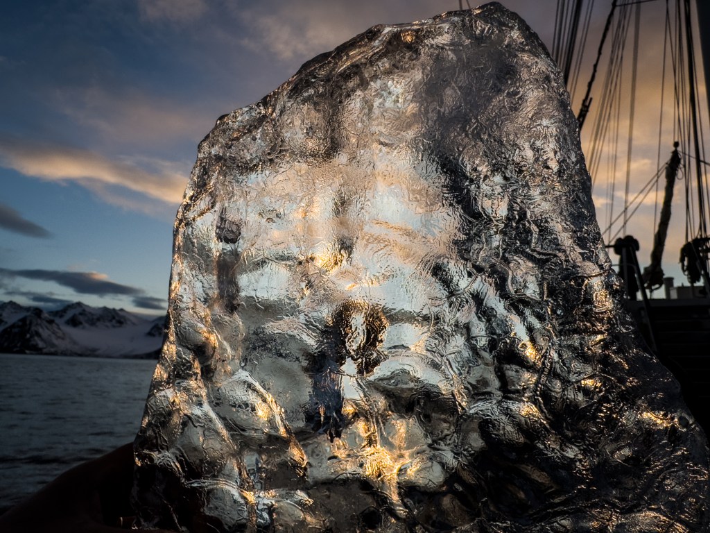 FROZEN LIGHT is a photographic series capturing Arctic sunsets refracted through ancient glacial ice, created during an artist residency on a tall ship in the High Arctic. October 2024.